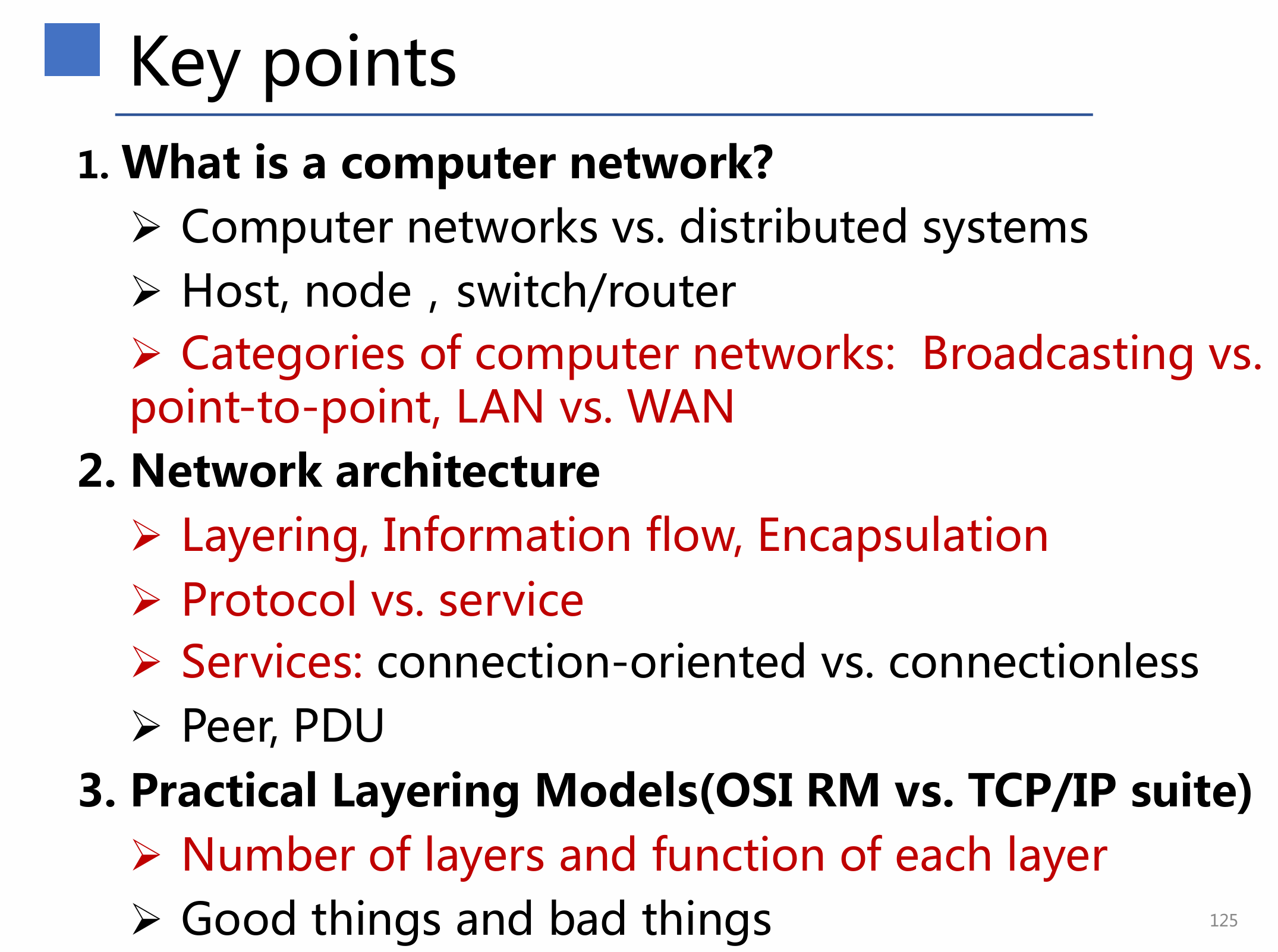 - Interface(接口): Defines which primitive(原始的) operations and services the lower layer makes available to the upper one.定义下层向上层提供哪些基本操作和服务。