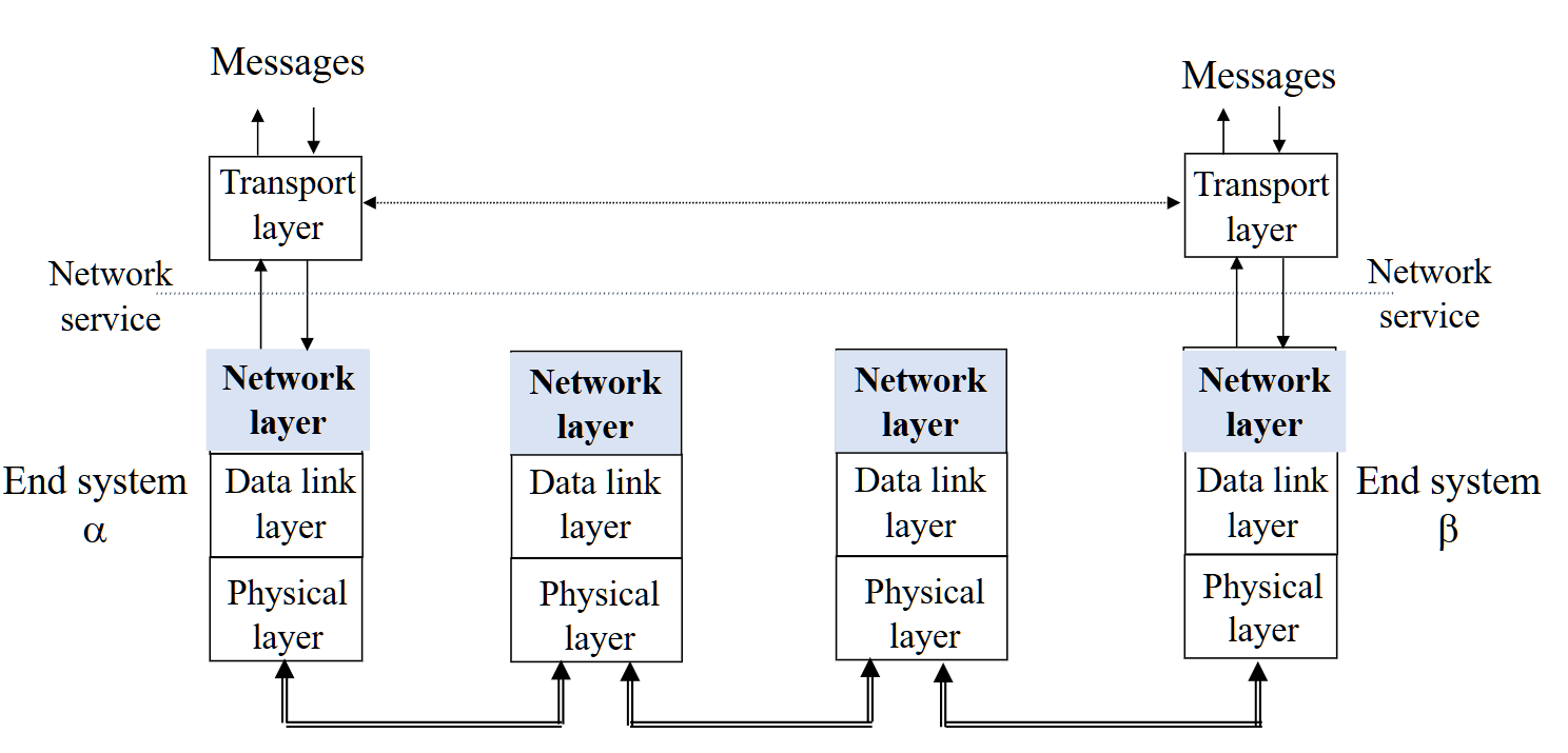 Network layer is the lowest layer that deals with end-to-end transmission (网络层是端到端传输的最底层)